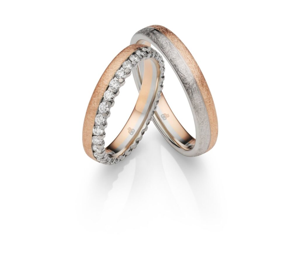 Trouwringen in rood en wit goud